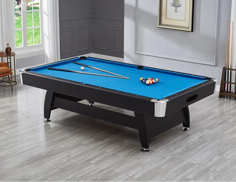 Le Billard est livré avec tout le nécessaire pour jouer : 16 billes (pleines et rayées), 2 queues, 1 triangle et 2 craies assorties au tapis. Il est prêt à l’emploi dès son installation.